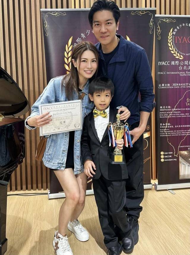 不得不说,他继承了父母的高颜值,作为星二代都算是很有潜力的,而一旁的爸爸黎诺懿则是穿着休闲装,头戴深色的棒球帽,状态看起来不错,黎诺懿的妻子李洁莹一如既往的留着一头长发,化了淡妆的她看起来气质满分,五官很深邃,合照时一只手还做出“4”的手势,十分有心。